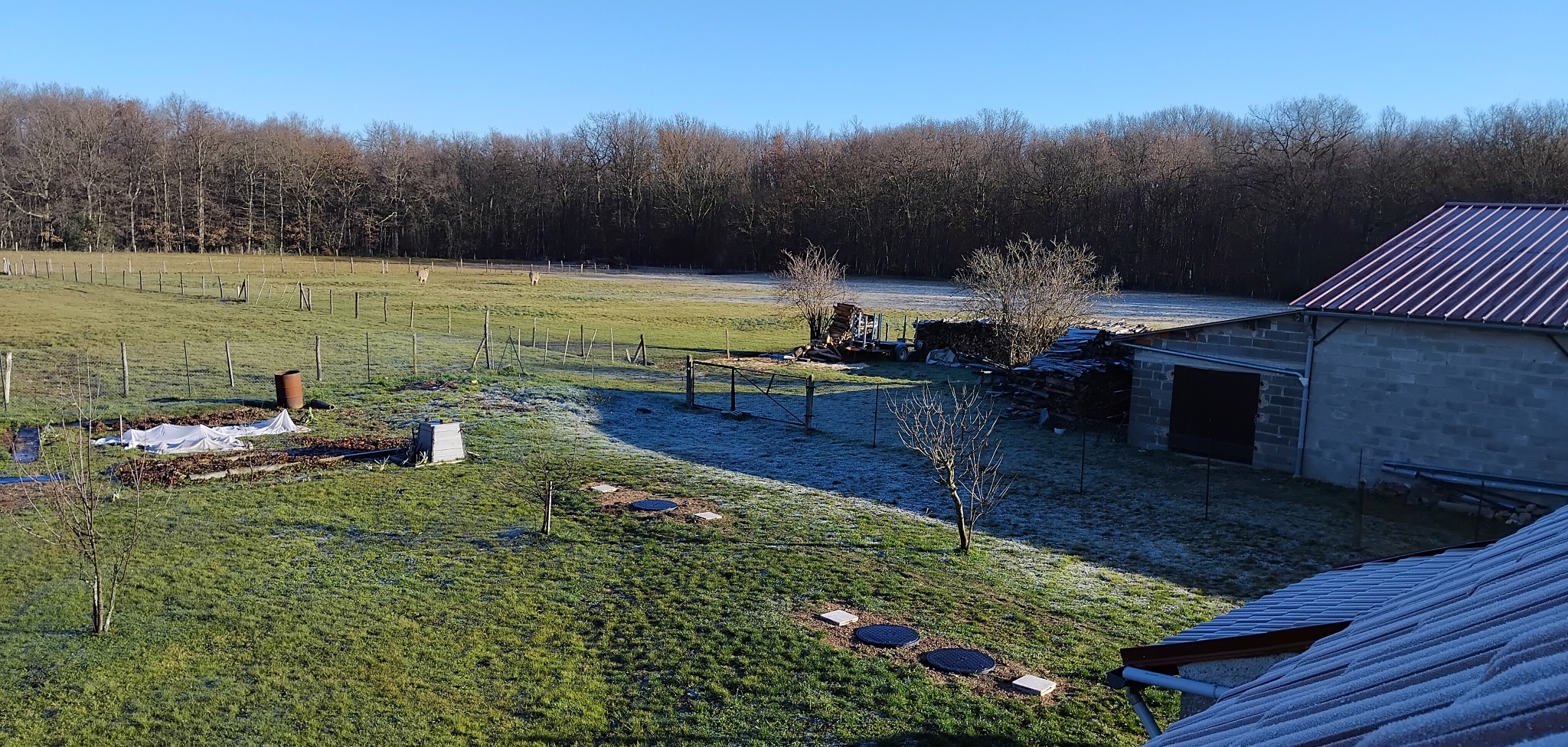 Propriété sur 1,7ha de terrain plat avec hangar env 250m2 et dépendances.